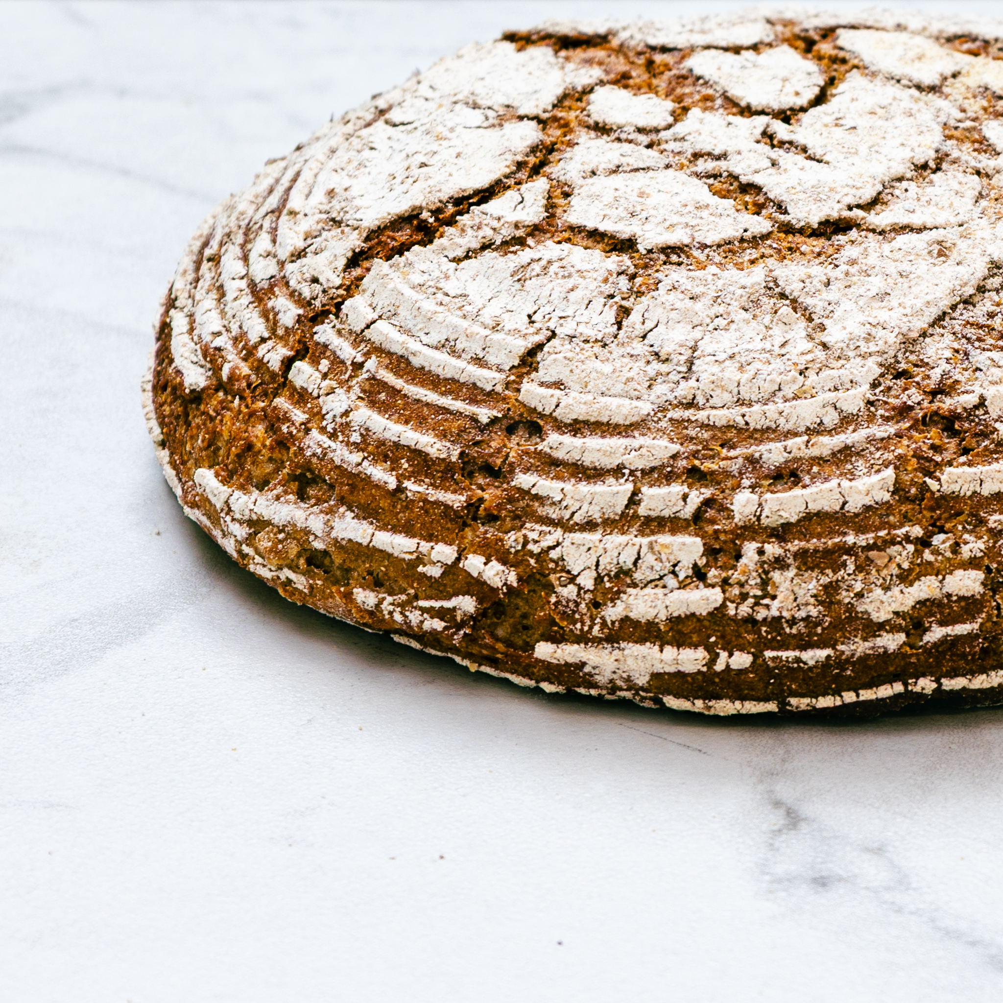 A dense loaf made using 90% rye flour and a specially cultivated rye sourdough with the addition of black treacle.